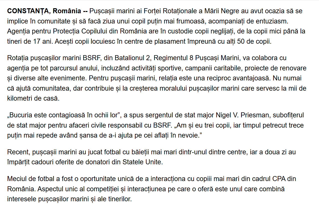 Pușcașii marini BSRF ajută comunitatea locală românească