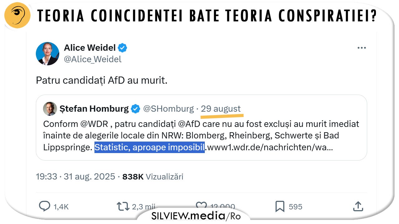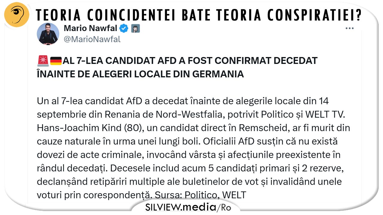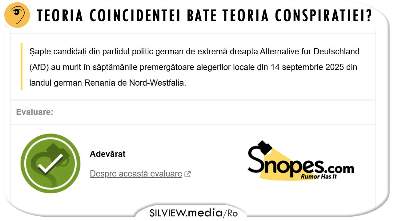 În august și septembrie 2025, postările online au susținut că, pe parcursul a două săptămâni, mai mulți membri ai partidului politic german de extremă dreapta Alternativa pentru Germania (AfD) au murit în săptămânile premergătoare alegerilor locale din 14 septembrie 2025 din landul Renania de Nord-Westfalia .